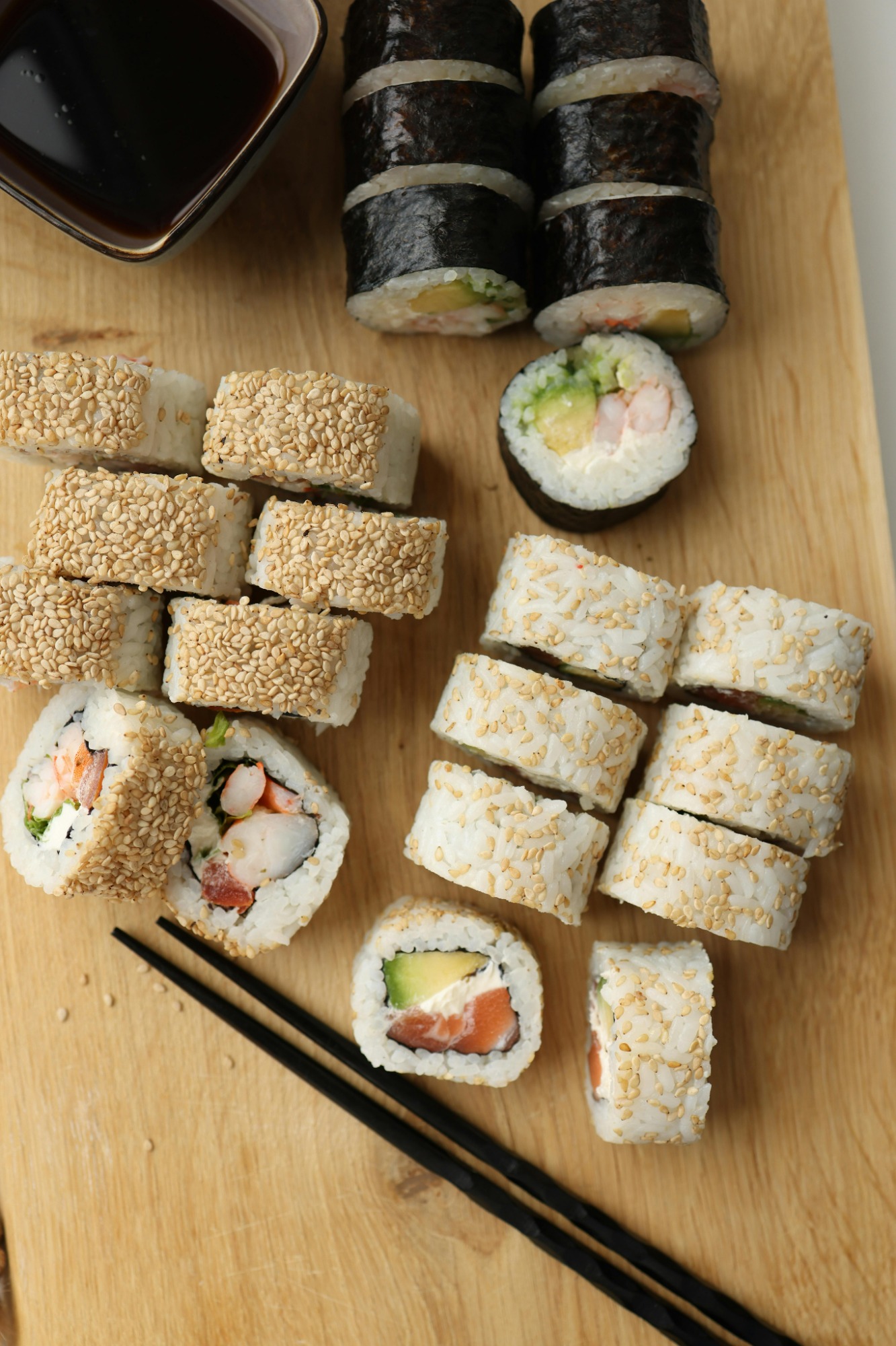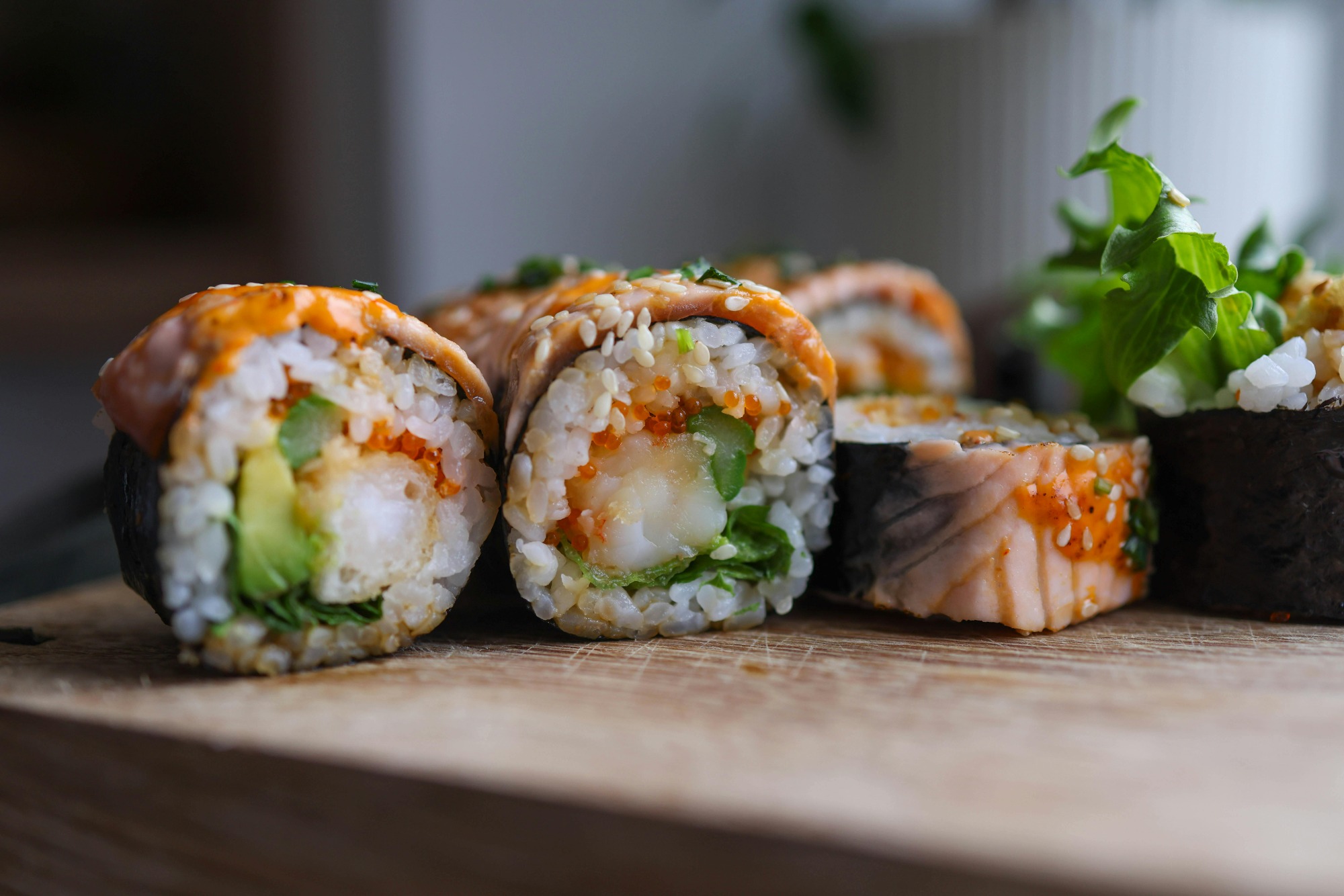 maślana, słodki majonez, wasabi, shitake, ogórek, awokado -